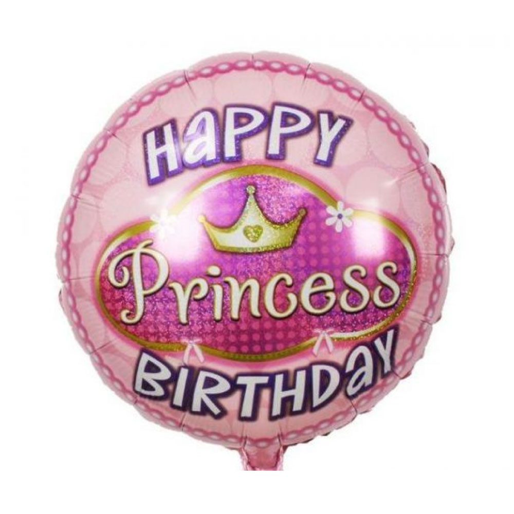 Στρόγγυλο μπαλόνι foil γενεθλίων Happy Birthday Princess 45εκ. για το θεματικό πάρτυ σας.