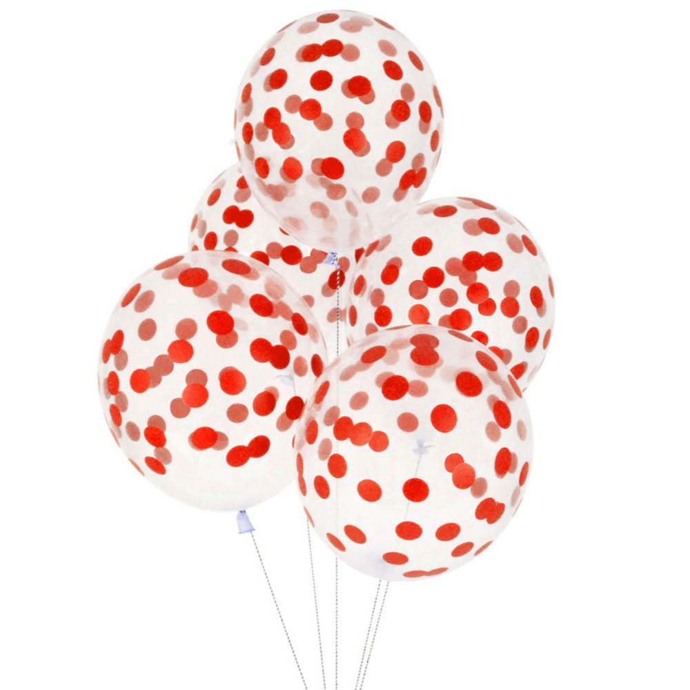 Διάφανο μπαλόνι latex 30εκ. γεμισμένο με στρογγυλό foil κομφετί σε κόκκινο χρώμα.