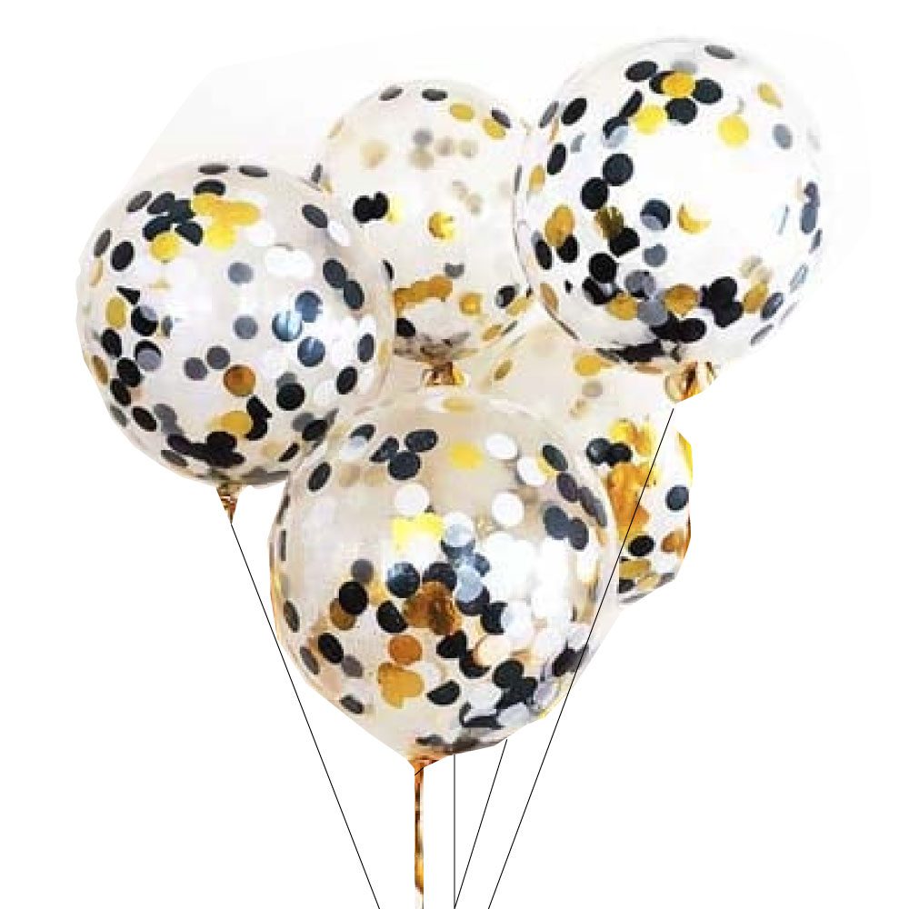 Μπαλόνι Latex Μαύρο-Χρυσό Κομφετί 30εκ.