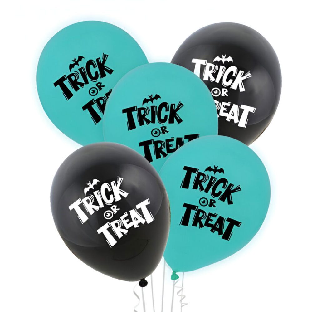 Μπαλόνι latex Trick or Treat 30εκ. σε δυο χρώματα (γαλάζιο, μαύρο) για το Halloween. Τυχαία επιλογή χρώματος.