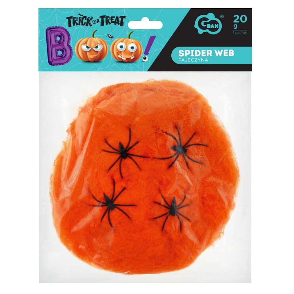 Διακοσμητικός ιστός αράχνης πορτοκαλί 20γρ. και 4 αράχνες για μια όμορφη διακόσμηση Halloween.