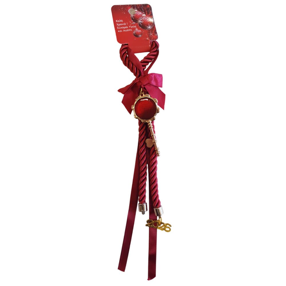 Γούρι Χριστουγέννων 30εκ. με κορδόνι πολυτελείας, μεταλλικό στοιχείο, σατέν κορδέλα και κρεμαστό 2026. Ένα όμορφο δώρο για κάθε σπίτι, κατάστημα ή γραφείο.