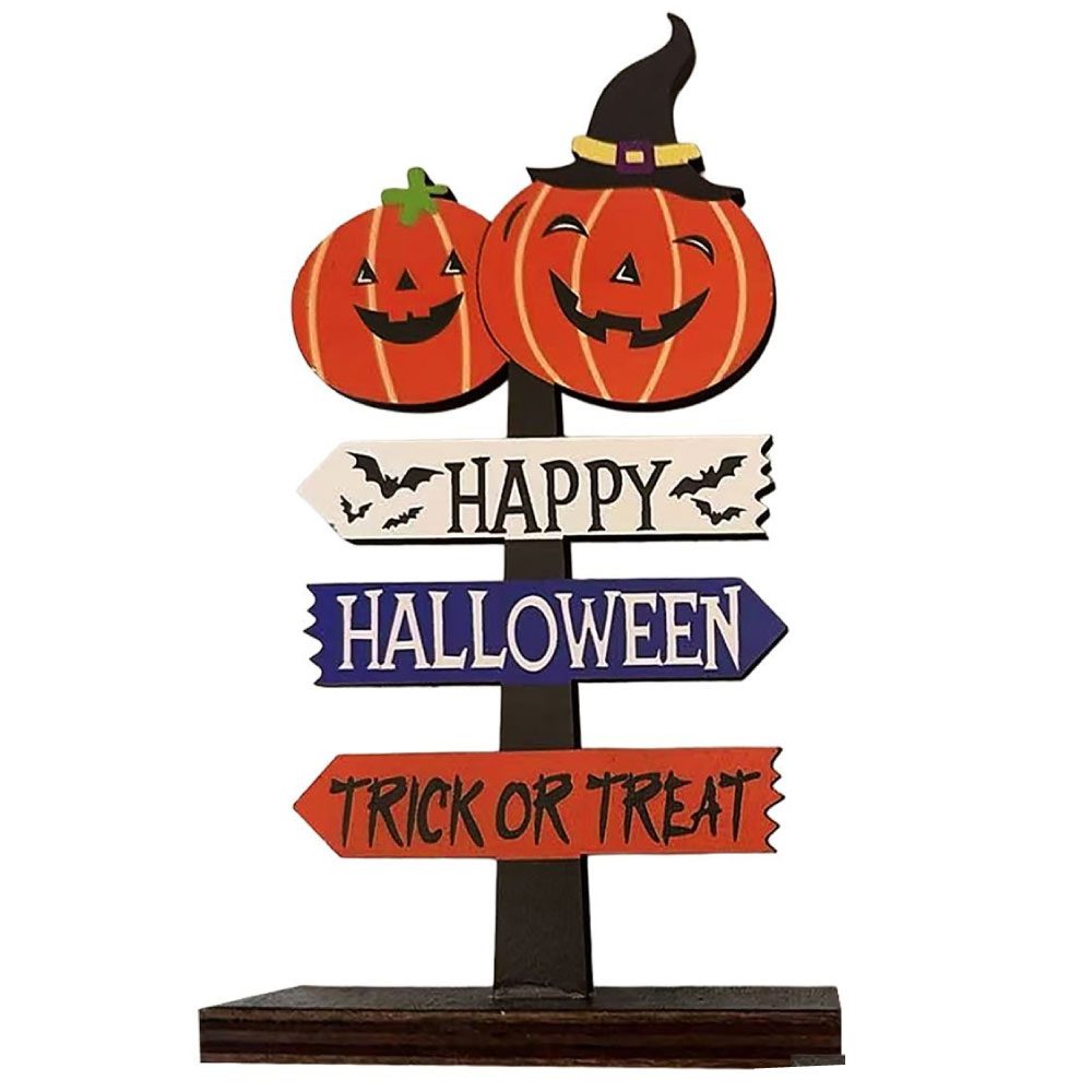 Επιτραπέζιο ξύλινο διακοσμητικό Halloween 15x8εκ. με πινακίδες και κολοκύθες.