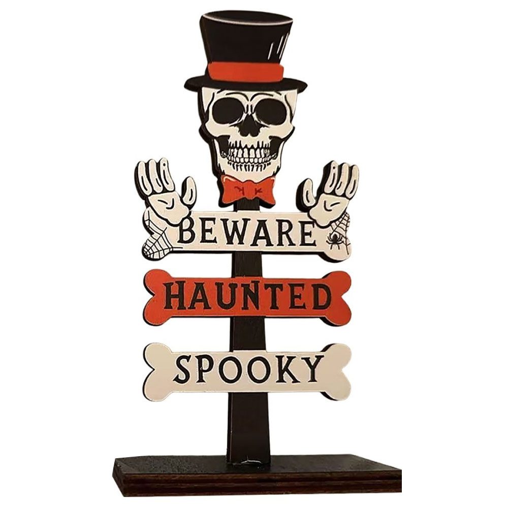 Επιτραπέζιο ξύλινο διακοσμητικό Halloween 15x8εκ. με πινακίδες και νεκροκεφαλή.