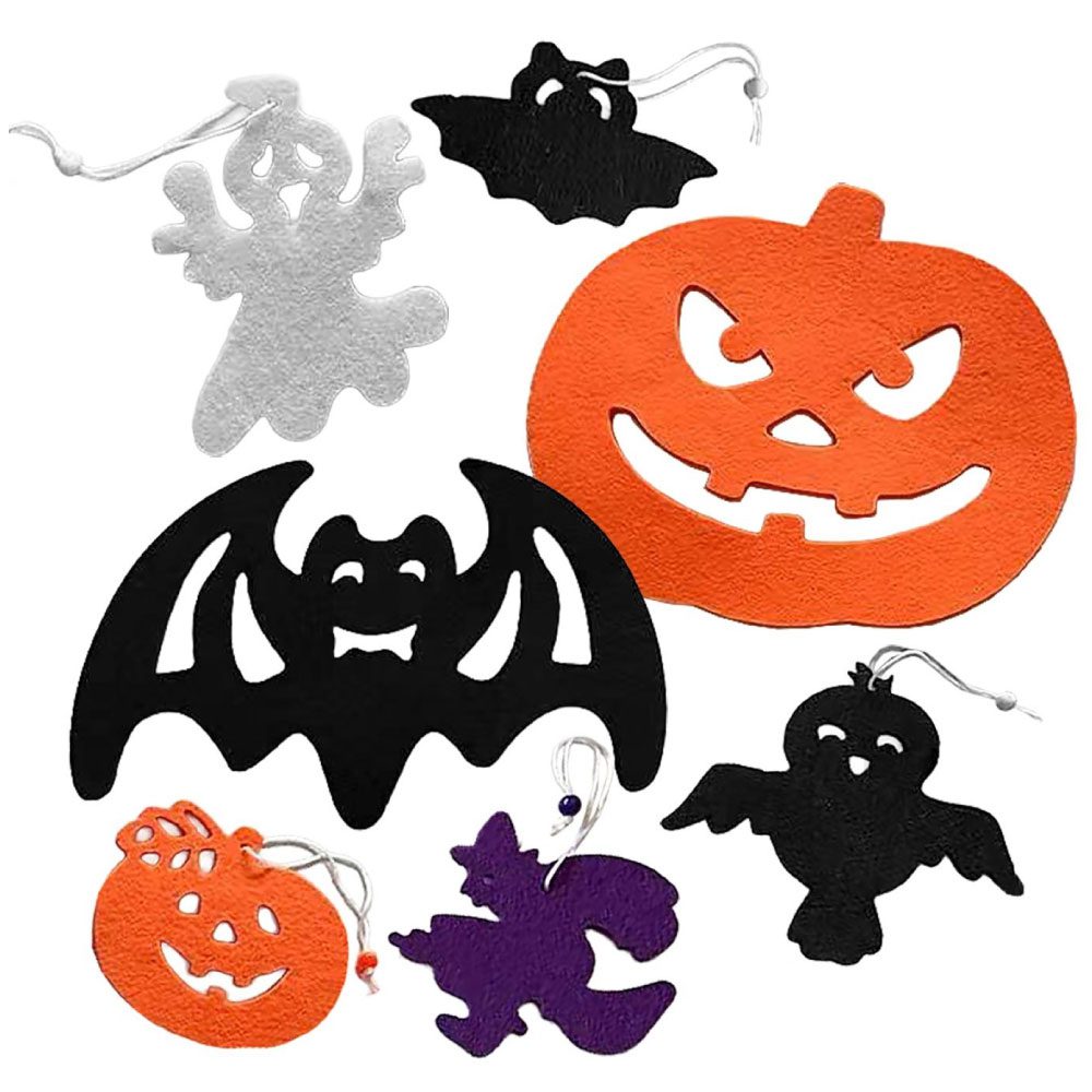 Σετ 28 τεμαχίων κρεμαστά τσόχινα διακοσμητικά σε διάφορα σχέδια για το Halloween.
