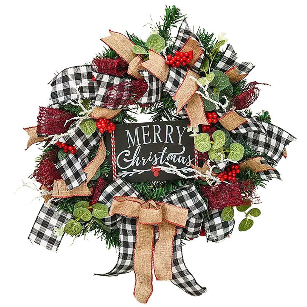 Στεφάνι διακοσμητικό στολισμένο με πίνακα Merry Christmas και διάμετρο 30εκ.