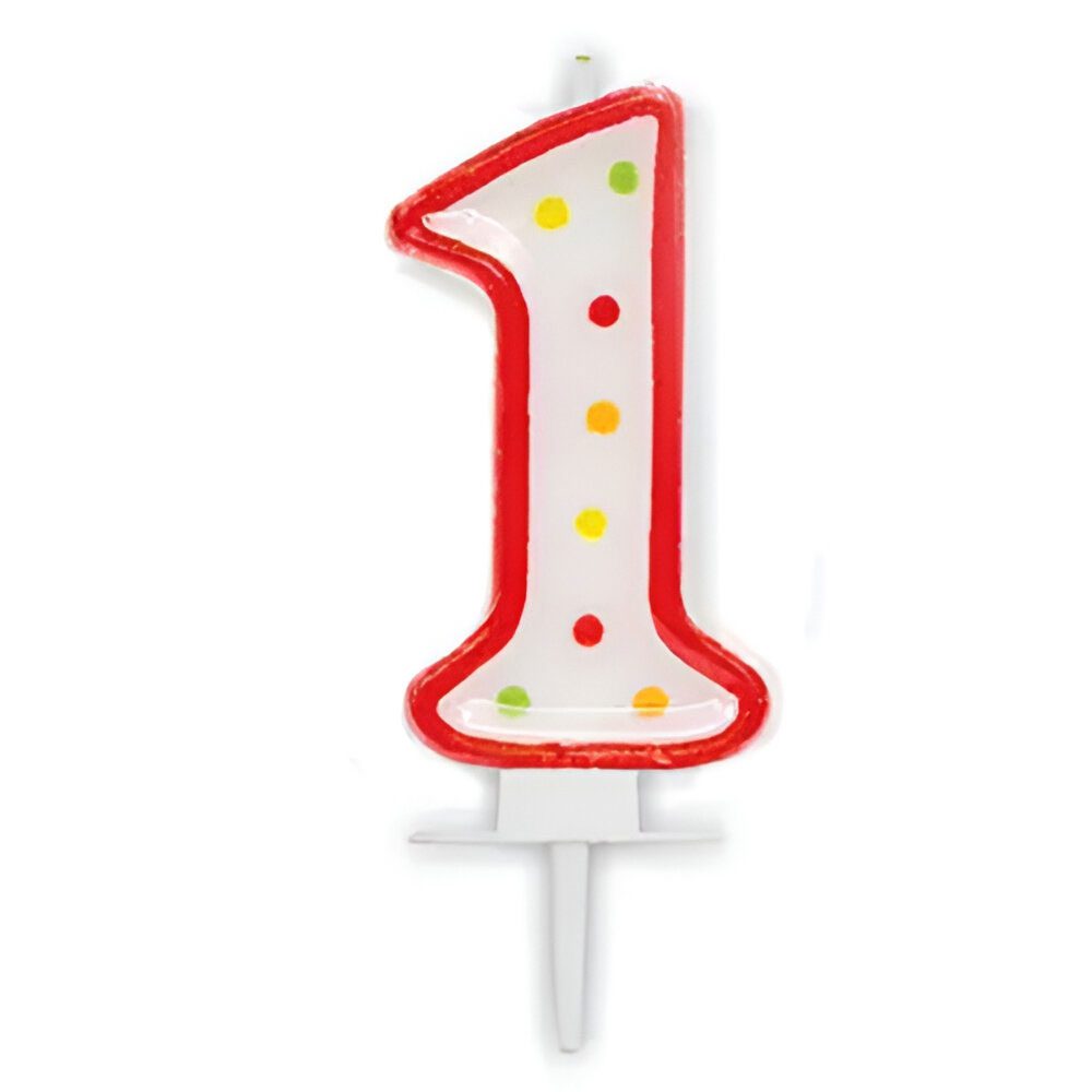 Κεράκι πουά αριθμός 1, για την τούρτα γενεθλίων σας. Τυχαίο χρώμα.