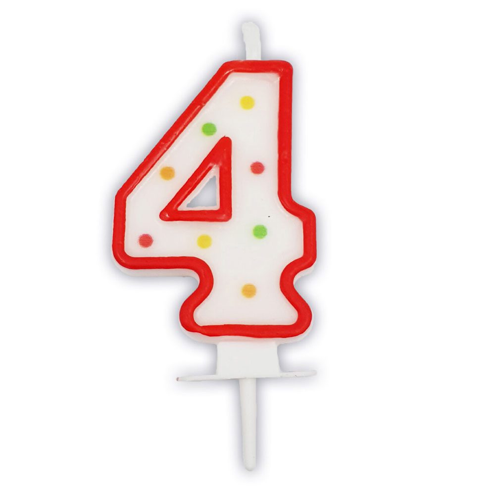Κεράκι πουά αριθμός 4, για την τούρτα γενεθλίων σας. Τυχαίο χρώμα.