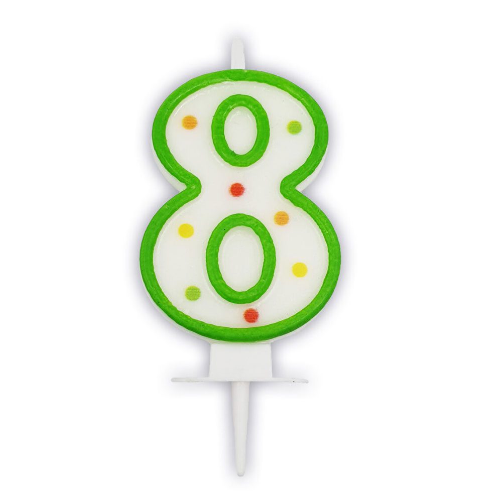 Κεράκι πουά αριθμός 8, για την τούρτα γενεθλίων σας. Τυχαίο χρώμα.