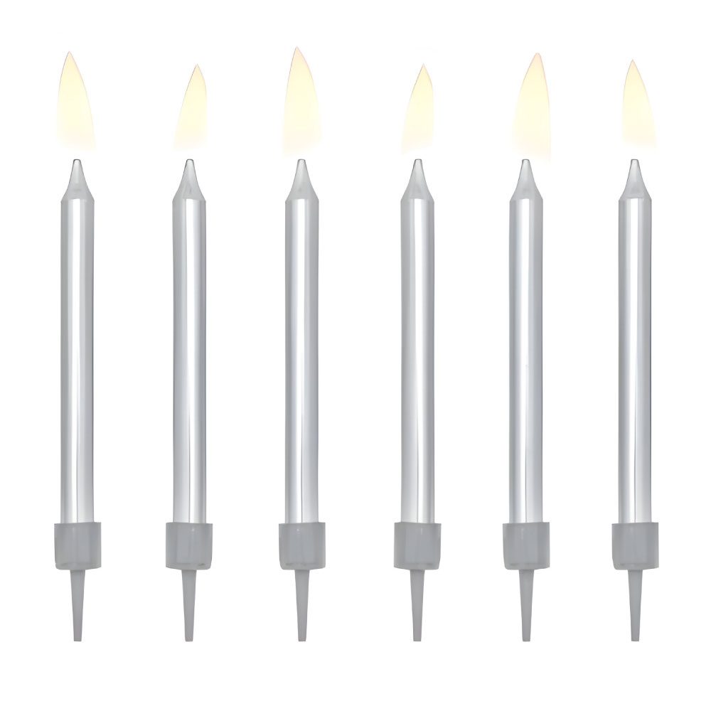 Κεράκια γενεθλίων με βάση σε ασημί χρώμα. Σετ 6 τεμαχίων.