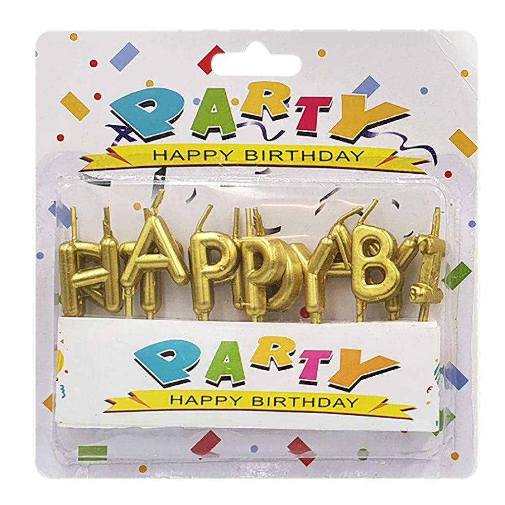 Κεράκια γενεθλίων σε χρυσό χρώμα που σχηματίζουν τη λέξη Happy Birthday.