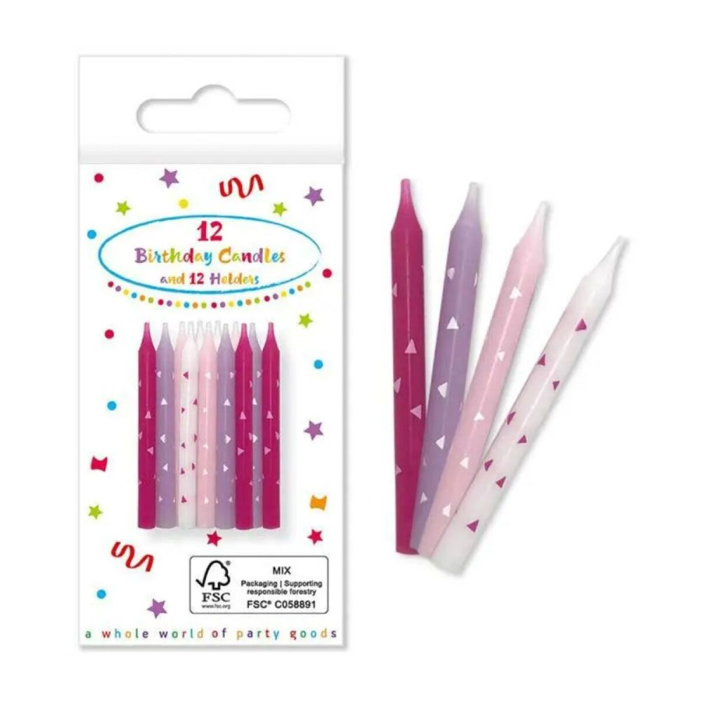 Κεράκια γενεθλίων με βάση σε ροζ χρώμα. Σετ 12 τεμαχίων.