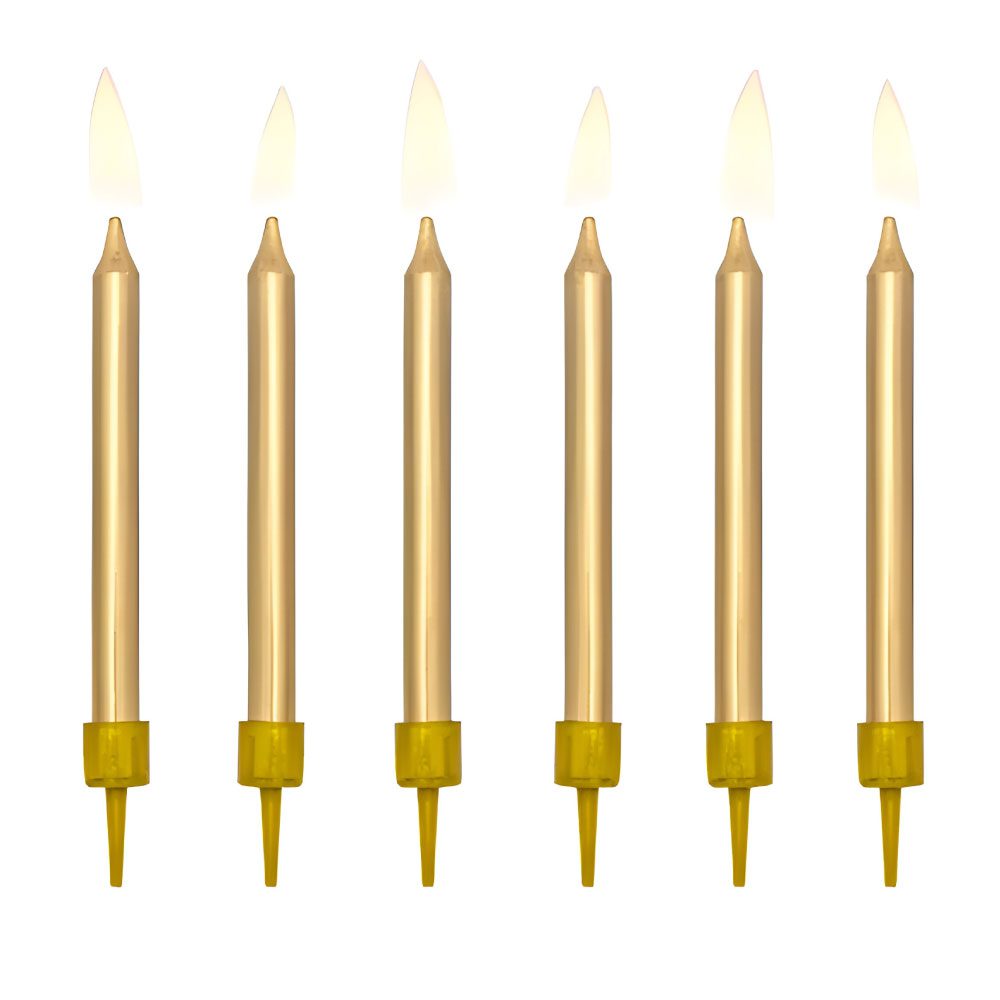 Κεράκια γενεθλίων με βάση σε χρυσό χρώμα. Σετ 6 τεμαχίων.