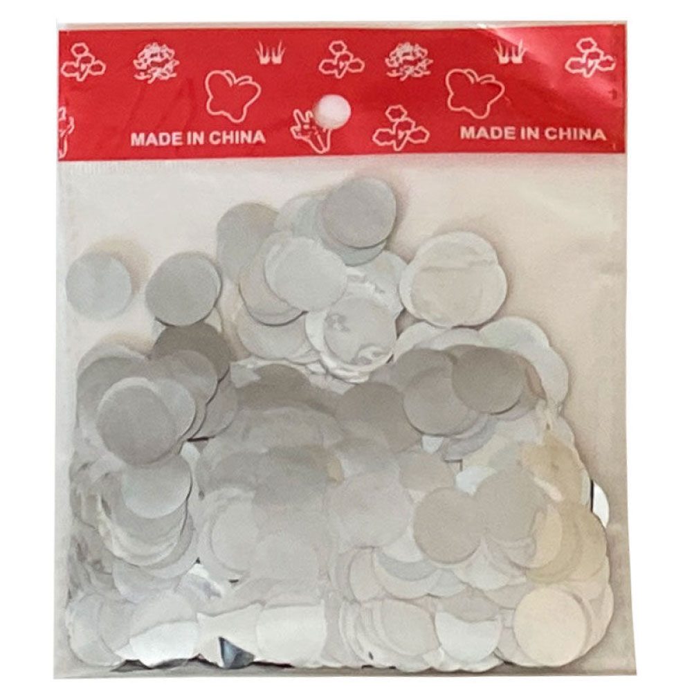 Στρόγγυλο foil κομφετί 1,5εκ. σε συσκευασία των 22γρ. για γέμισμα μπαλονιών ή διακόσμηση. Χρώμα: Ασημί