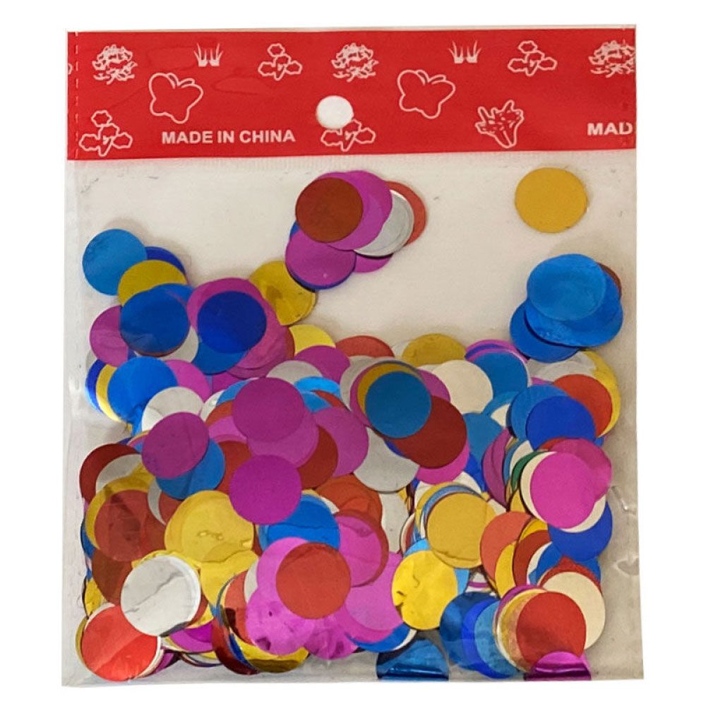 Στρόγγυλο foil κομφετί 1,5εκ. σε συσκευασία των 22γρ. για γέμισμα μπαλονιών ή διακόσμηση. Χρώμα: Πολύχρωμο