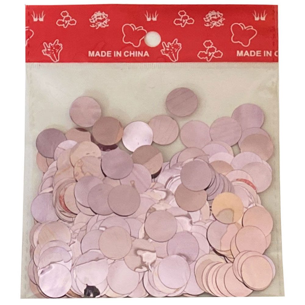 Στρόγγυλο foil κομφετί 1,5εκ. σε συσκευασία των 22γρ. για γέμισμα μπαλονιών ή διακόσμηση. Χρώμα: Ροζ Χρυσό