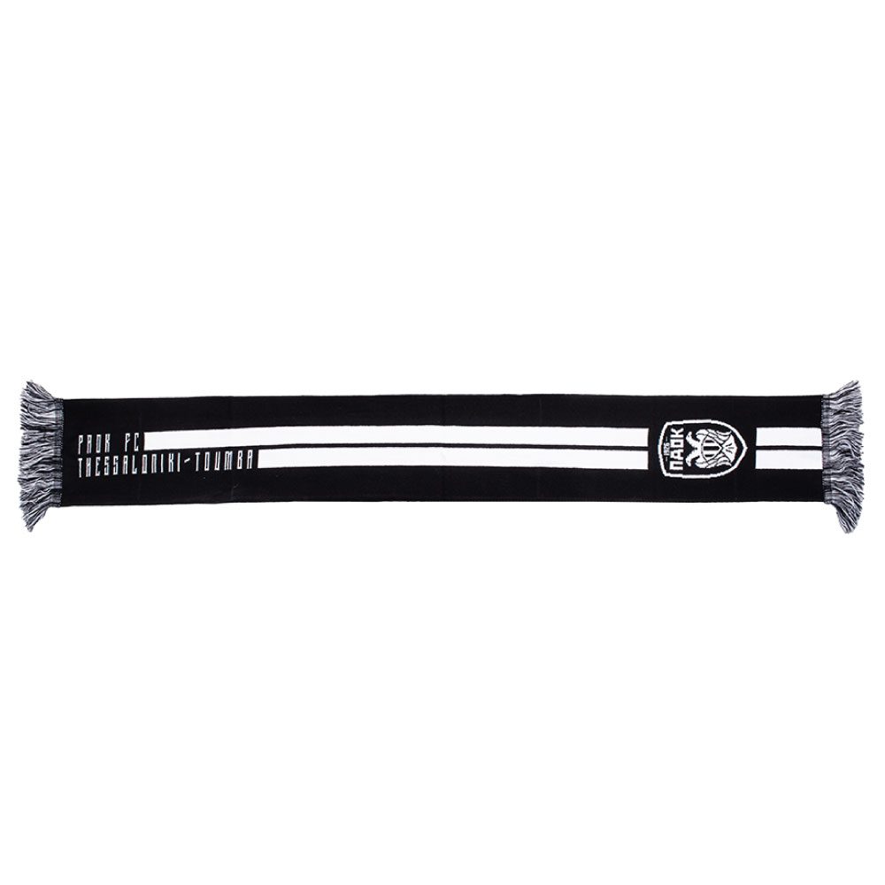 Πλεκτό χειμερινό κασκόλ με το λογότυπο του ΠΑΟΚ στη μία άκρη και την έδρα της ομάδας Thessaloniki - Toumba στην άλλη άκρη. Φοριέται και από τις δυο πλευρές. Μία όμορφη πρόταση δώρου για τους οπαδούς του δικέφαλου που θα τους ενθουσιάσει! Γνήσιο προϊόν. Κατασκευάζεται για την PAOK FC από την Interhat.
