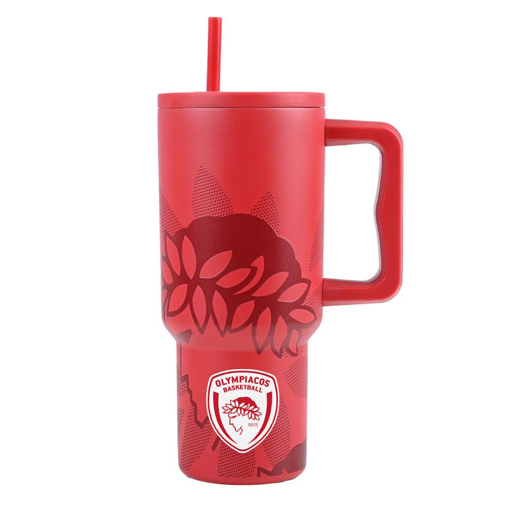 Ποτήρι ισοθερμικό XL με πρακτικό χερούλι Ολυμπιακός BC από την Estia Home Art σε συσκευασία δώρου. Περιλαμβάνει δυο γίγας πλαστικά καλαμάκια για μεγαλύτερη απόλαυση. Με διπλό τοίχωμα για άριστη διατήρηση της θερμοκρασίας (κρύα ροφήματα έως 12 ώρες και ζεστά έως 6 ώρες). Από την οικολογική σειρά "Save the Aegean" από υψηλής ποιότητας ανοξείδωτο ατσάλι 18/10, χωρίς BPA.