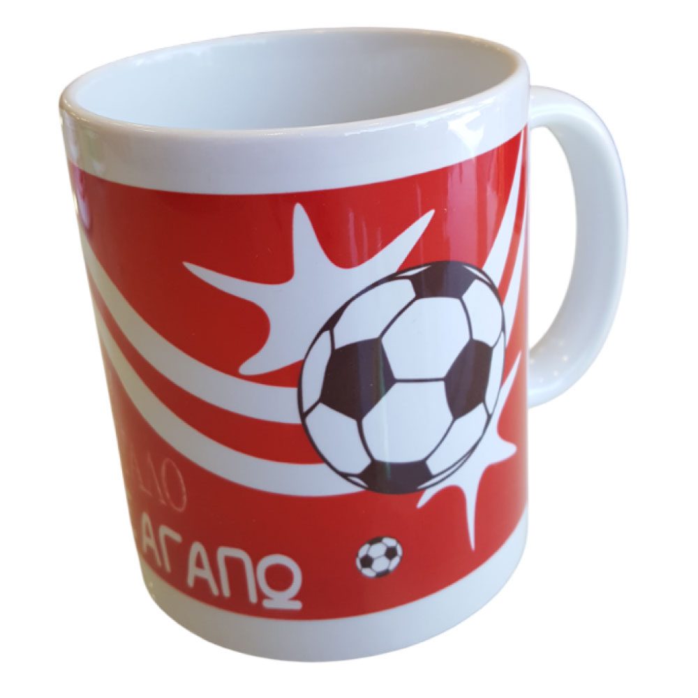 Κούπα πορσελάνης Ολυμπιακός "Δεν ξέρω τι είναι αυτό που μου συμβαίνει, μου έχει πάρει το μυαλό, Θρύλε μου σε αγαπώ" με μπάλα ποδοσφαίρου.