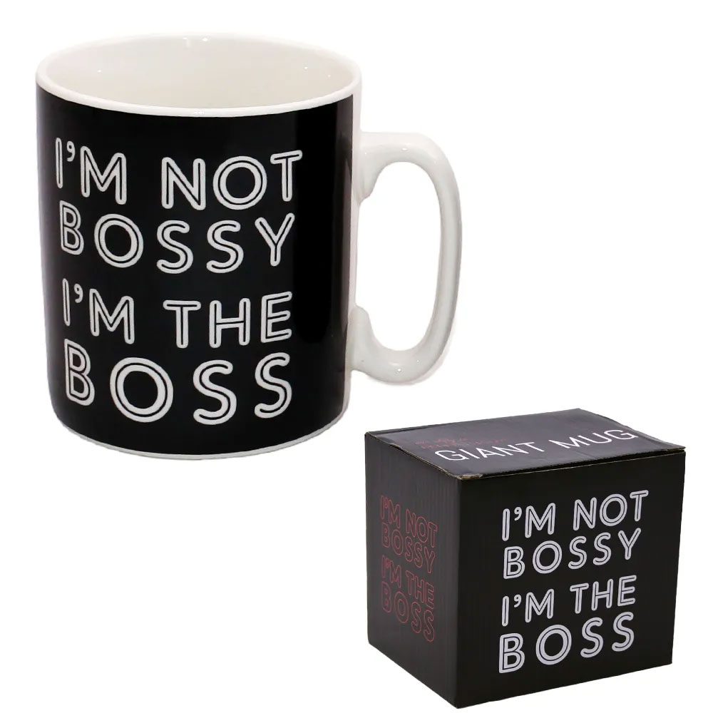 Kούπα μαύρη γίγας 900ml για το αφεντικό με μήνυμα "I'm not bossy I'm the boss" σε συσκευασία δώρου.