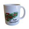 Κούπα πορσελάνης για τις γιορτές των Χριστουγέννων με μήνυμα για τη μαμά "Μαμάκα μου σ'αγαπώ! Καλή Χρονιά!" και χριστουγεννιάτικες φιγούρες.