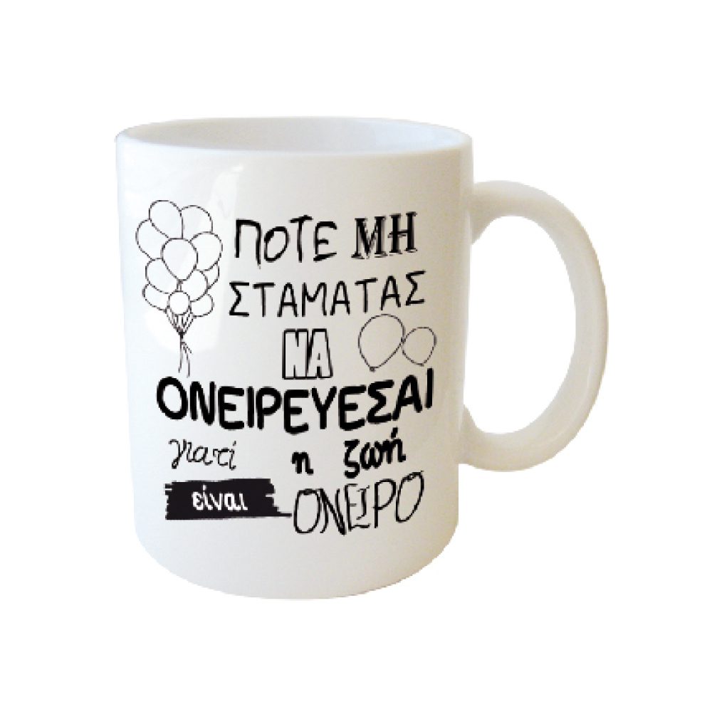 Κούπα πορσελάνης με μήνυμα "Ποτέ μην σταματάς να ονειρεύεσαι γιατί η ζωή είναι όνειρο".
