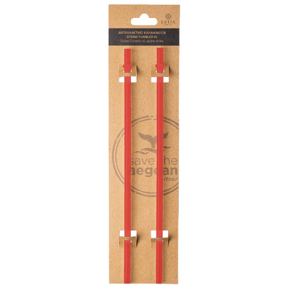 Ανταλλακτικά κόκκινα καλαμάκια γίγας για το Straw Tumbler XL BC Edition Ολυμπιακός. Σετ 2 τεμαχίων.