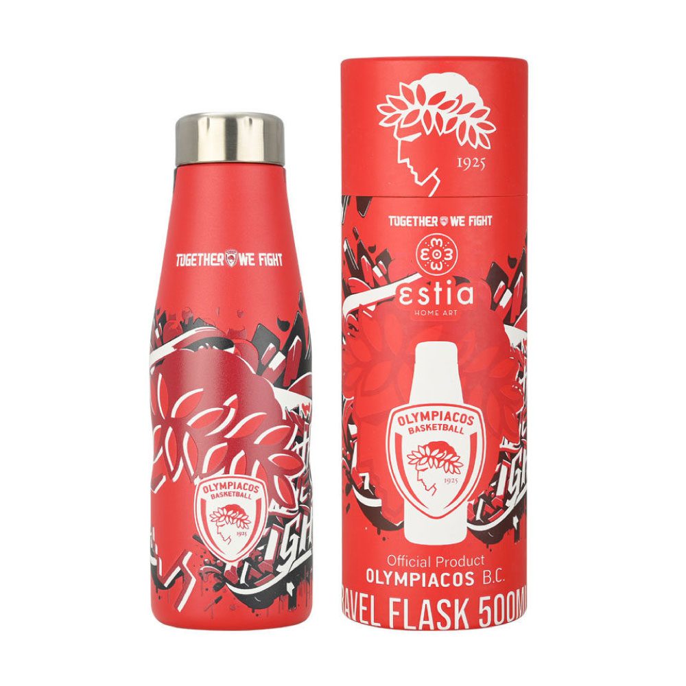 Μπουκάλι ισοθερμικό Ολυμπιακός BC από την Estia Home Art σε συσκευασία δώρου. Με διπλό τοίχωμα για άριστη διατήρηση της θερμοκρασίας (κρύα ροφήματα έως 12 ώρες και ζεστά έως 6 ώρες). Από την οικολογική σειρά "Save the Aegean" από υψηλής ποιότητας ανοξείδωτο ατσάλι 18/8, χωρίς BPA.