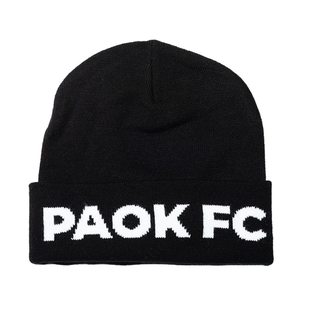 Πλεκτός μαύρος σκούφος one size ενηλίκων με το όνομα της ομάδας PAOK FC στο μπροστινό μέρος. Μία όμορφη χειμερινή πρόταση δώρου γαι τους οπαδούς του δικέφαλου. Θα τους ενθουσιάσει! Γνήσιο προϊόν. Κατασκευάζεται για τον PAOK FC από την Interhat.